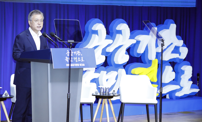 문 대통령은 “우리는 소득주도성장·혁신성장·공정경제를 축으로 경제 패러다임 대전환을 추진하고 있다”며 “변화는 선택이 아닌 생존 문제로, 정부는 모든 정책 수단을 동원해 반드시 우리 경제 구조와 체질을 바꾸고 성장 잠재력을 최대한 키우겠다”고 밝혔다.