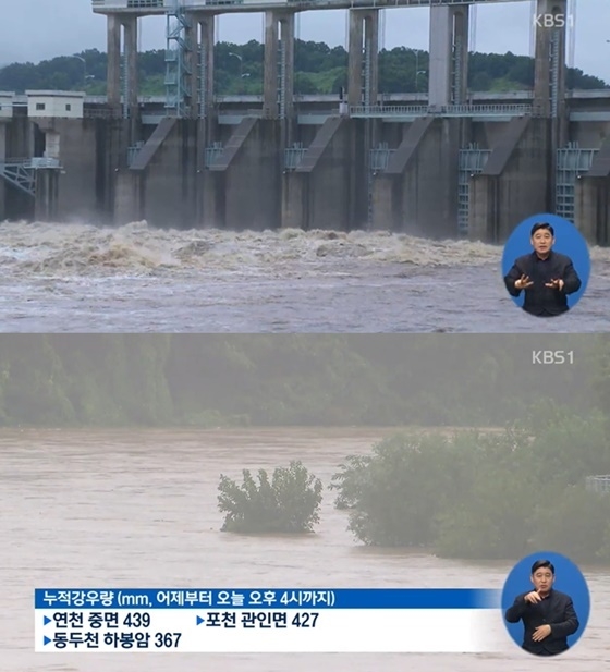 이에 기상청은 "전날부터 경기도에 내린 누적 강수량은 406mm로 곳곳이 침수되거나 하천이 범람해 피해가 속출하고 있다. 내일 새벽까지 40mm의 강한 비가 예상된다"고 주의를 당부했다.