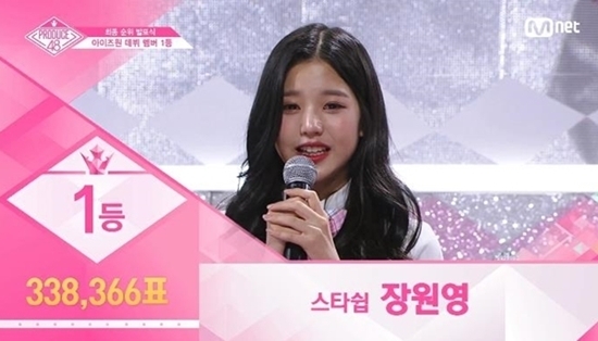 이날 장원영(스타쉽)은 총 338,366표를 얻어 연습생들 가운데 1등을 차지, 아이즈원의 센터로 선발됐다.