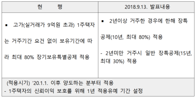 고가 1주택자의 장기보유특별공제 2년거주 요건 강화