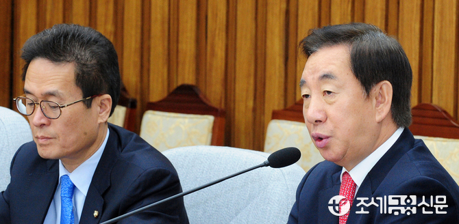 (조세금융신문=김용진 기자) 김성태 자유한국당 원내대표가 13일 오전 국회에서 열린 원내대책회의에서 "홍영표 더불어민주당 원내대표가 어제 인사청문회 제도를 완화하자고 제안했다"면서 "인사청문회가 무색할 정도로 문재인 정권 들어 벌써 10명째 묻지마 임명을 강행한 판에 차라리 인사청문을 없애자는 게 솔직한 것"이라며 발언을 하고 있다