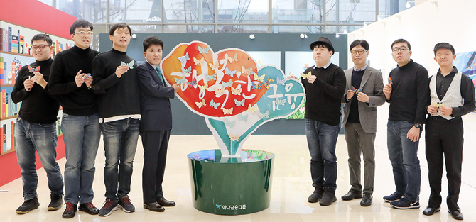 하나금융은 3일 을지로 KEB하나은행 신사옥 로비에서 내년도 하나금융그룹 캘린더 작품의 작가인 안윤모와 자폐성 장애작가 5인의 작품 전시회를 가졌다고 밝혔다.