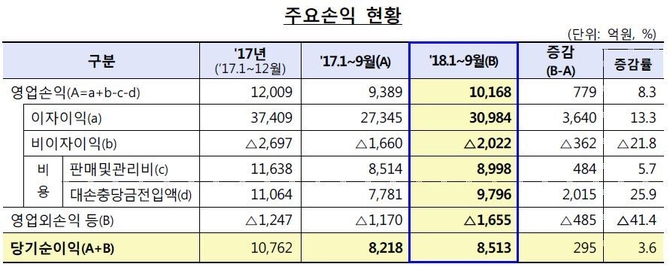 5일 금융감독원이 발표한 자료에 따르면 지난 1~9월 중 국내 저축은행의 총 당기순이익은 8513억원을 기록했다. 이는 지난해 동기(8218억원) 대비 3.6% 증가한 수치다.