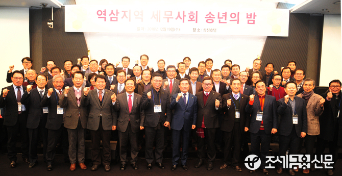 19일 서울 강남구 삼정호텔에서 진행된 '2018 역삼지역 세무사회 송년의 밤'에서 임승룡 역삼지역 세무사회 회장을 비롯해 회원사 관계자들이 행사에 참여했다.