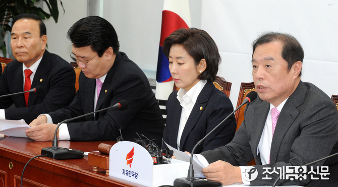 (조세금융신문=김용진 기자)김병준 자유한국당 비상대책위원장이 31일 오전 국회에서 열린 비상대책위원회 회의에서 "문재인 대통령이 김정은 북한 국무위원장으로부터 받은 친서 연하장 한장에 기뻐하고 덕담을 큰 메세지인양 만족해한다"며 "그럴 시간이 있느냐"고 발언을 하고 있다.