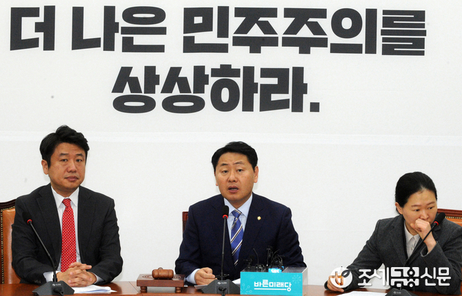 (조세금융신문=김용진 기자)김관영 바른미래당 원내대표가 15일 오전 국회에서 열린 원내대책회의에서 "정부가 공공기관 차량2부제, 서울시내 노후경유차량 운행제한 미약한 정책만 내놓고 있어 대단히 유감"이라는 발언을 하고 있다.
