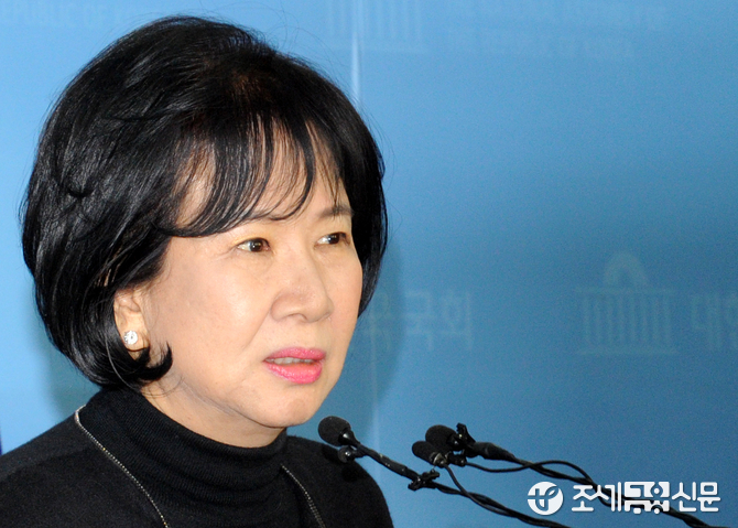 손혜원 무소속 의원이 21일 오전 국회 정론관에서 젊은 빙상인연대, 빙상계 성폭력 사건 관련 입장 표명 기자회견을 하고 있다.(사진=김용진 기자)