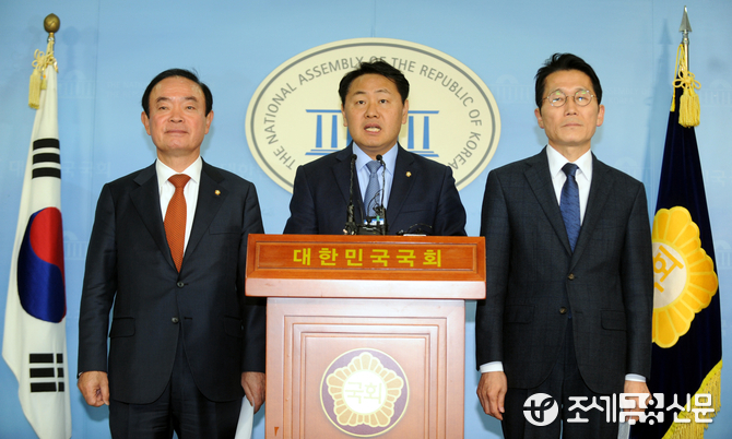 (조세금융신문=김용진 기자)야3당 원내대표들이 23일 오전 국회 정론관에서 선거제 개혁안을 발표하고 있다. (왼쪽부터)장병완 민주평화당 원내대표, 김관영 바른미래당 원내대표, 윤소하 정의당 원내대표