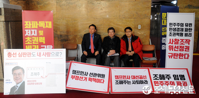 (조세금융신문=김용진 기자)30일 오전 국회 로텐더홀에서 조해주 선관위원 후보자 임명강행 반대하는 연좌농성을 자유한국당 의원들이 이어가고 있다