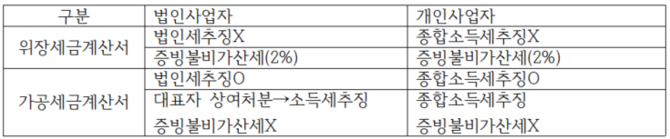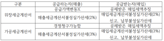 가공세금계산서 : 재화, 용역의 실제 공급이 없었음에도 허위로 매출실적조작, 매입세액공제 등을 위해서 발행한 세금계산서