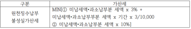 소득세를 징수하여 납부할 의무가 있는 자가 징수하여야 할 세액을 세법에 따른 납부기한까지 납부하지 않거나 과소납부한 경우에는 다음의 금액을 납부할 세액에 가산하거나 환급세액에서 공제한다.