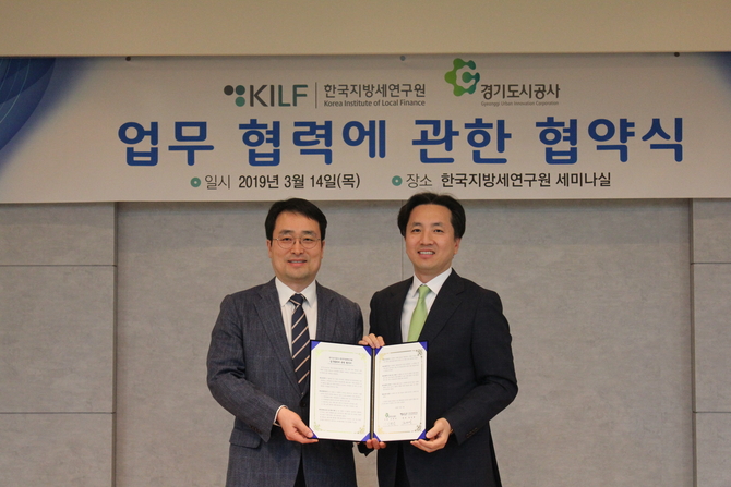 (조세금융신문=고승주 기자) 지방세연구원과 경기도시공사가 14일 양해각서를 체결하고, 지방발전 방안 모색을 위한 업무협력을 추진해나가기로 했다.