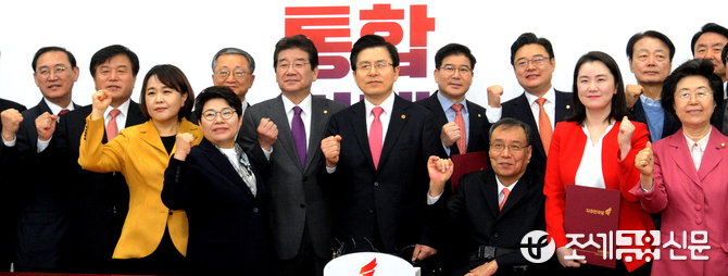 (조세금융신문=김용진 기자)황교안 자유한국당 대표가 19일 오전 국회에서 열린 주요 당직자 임명자 수여식 및 4.3 필승 선거대책회의에 앞서 참석자들과 파이팅을 외치고 있다