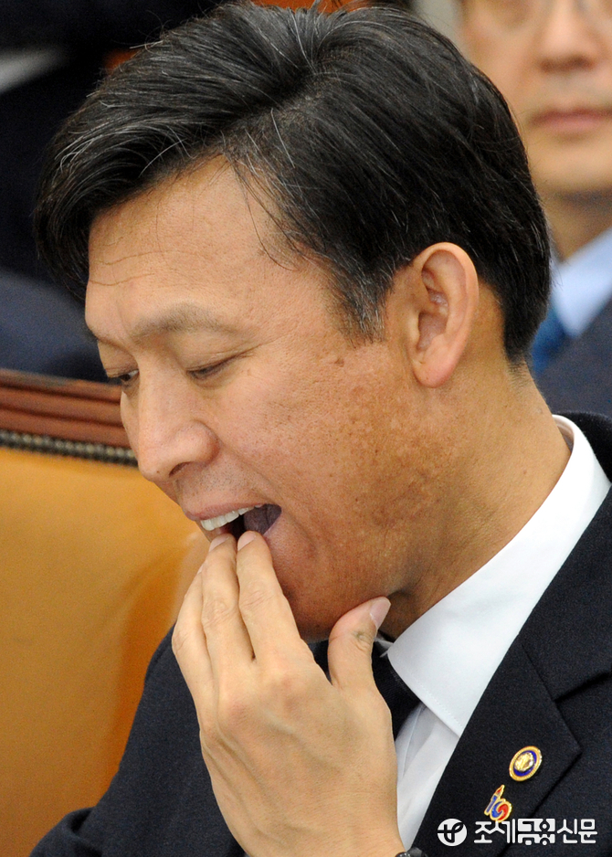 (조세금융신문=김용진 기자)김영문 관세청장이 26일 오전 국회에서 열린 기획재정위원회 전체회의에서 얼굴을 만지며 생각을 하고 있다