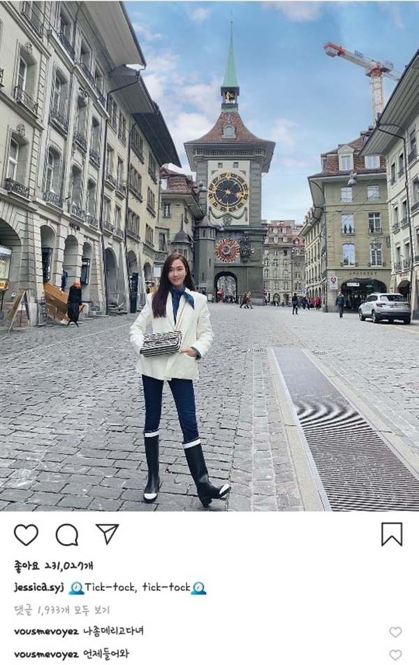 제시카는 31일 SNS에 스위스 치트글로게 한 거리서 찍은 사진을 올려 팬들의 이목을 끌었다.