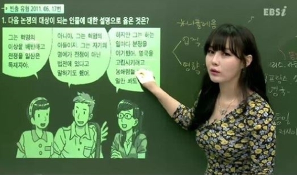사탐영역 인터넷강사인 그녀는 고학력, 뛰어난 미모로 명실상부 업계내 스타강사 '갓다지'로 불리고 있다.