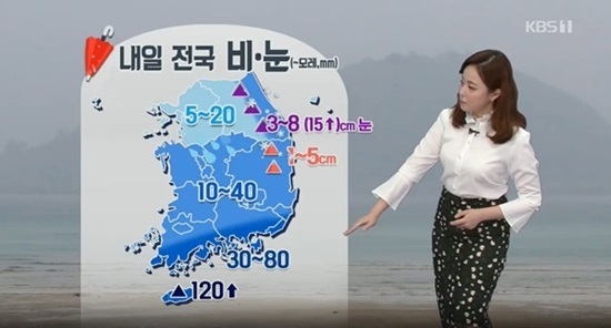 또 내일 오후(12시 이후)에 전남과 제주도를 시작으로 밤(18시 이후)에는 그 밖의 전국으로 확대, 강원산지와 경북북동산지 비 또는 눈이 내리겠다고 덧붙였다.