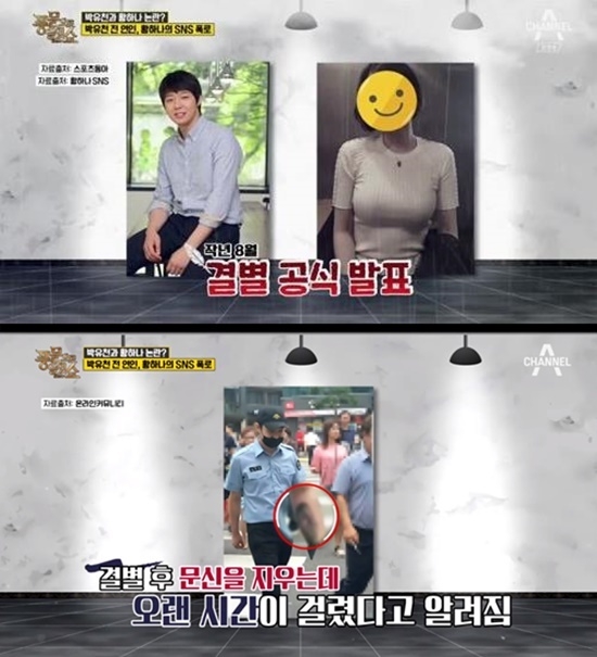 앞서 방송된 채널A '풍문으로 들었쇼'에 모습을 드러낸 한 연예부 기자는 "박 씨가 한쪽 팔을 황 씨 (얼굴로) 도배하지 않았느냐"며 "많이들 보셨을 것"이라고 설명했다.