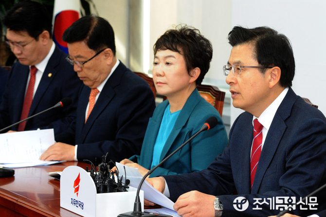 (조세금융신문=김용진 기자)황교안 자유한국당 대표가 11일 오전 국회에서 열린 최고위원회 회의에서 발언을 하고 있다. 황 대표는 미국 워싱턴에서 진행될 예정인 문재인 대통령과 도널드 트럼프 미국 대통령의 한미정상회담에 대해 "문 대통령은 중재자가 아니라 북한의 변호인이 되겠다는 것"이라며 "한미 이견과 갈등만 확대되지 않을까 심히 걱정된다"고 말했다.