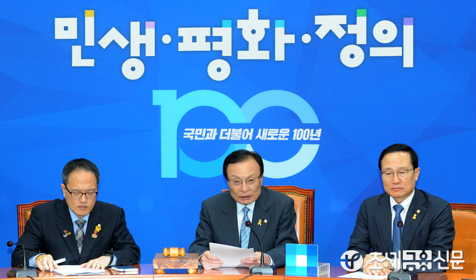 (조세금융신문=김용진 기자)이해찬 더불어민주당 대표가 15일 오전 국회에서 열린 최고위원회 회의에서 모두 발언을 하고 있다.