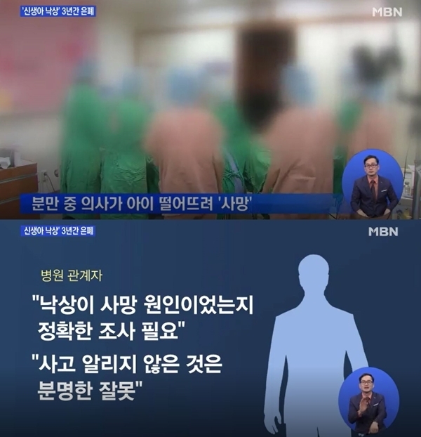 당시 아이를 받아든 의료인이 넘어지는 과정에서 아이 머리가 땅에 부딪혔으나 병원 측은 '복합적인 질병요인으로 인한 사망' 처리했다는 것.