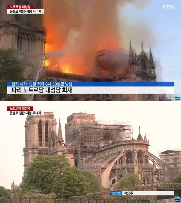 불길은 약 8시간 동안 계속됐고 지붕과 첨탑이 무너지고 스테인드글라스 '장미창'이 손상을 입어 세간의 안타까움을 자아냈다.