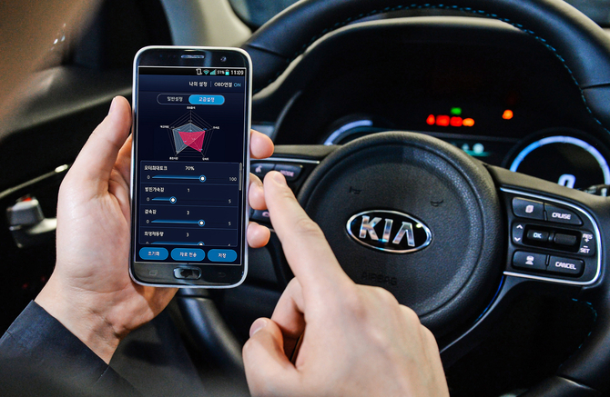 이 기술이 적용되면 운전자는 스마트폰이나 태블릿 등 모바일 기기로 전기차의 ▲모터 최대토크 ▲발진 가속감 ▲감속감 ▲회생 제동량 ▲최고속도 제한 ▲응답성 ▲냉·난방에너지 등 총 7가지의 차량 성능을 일정 범위 안에서 자유롭게 조절할 수 있다.