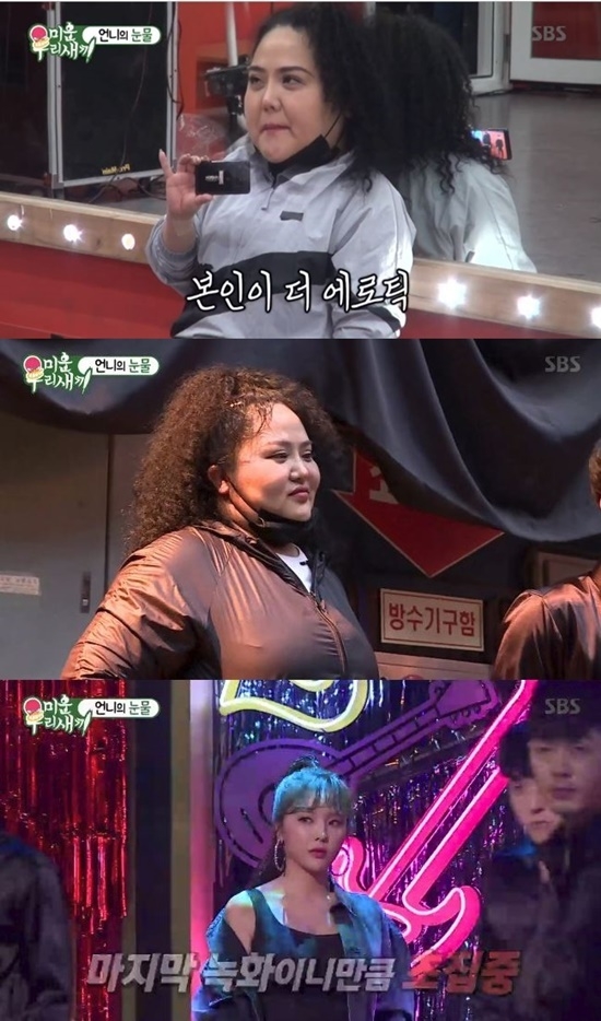 그녀는 28일 방송된 SBS '미운 우리 새끼'에 등장, 앨범 준비에 몰두한 동생을 물심양면으로 돕는 모습을 공개했다.