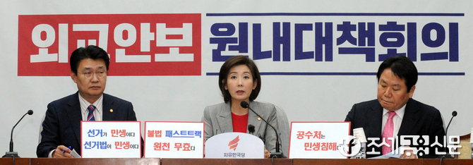 (조세금융신문=김용진 기자)나경원 자유한국당 원내대표가 7일 오전 국회에서 열린 외교안보 원내대책회의에서 모두 발언을 하고 있다.