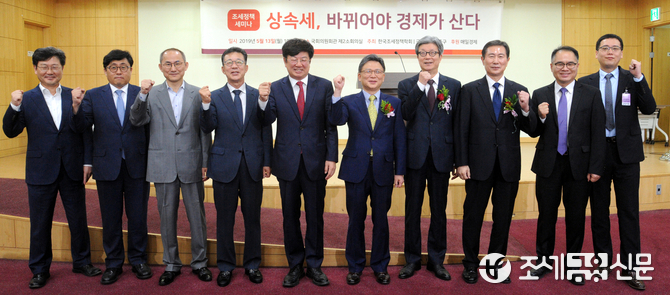 (조세금융신문=김용진 기자)오문성 한국조세정책학회 회장이 13일 오전 국회의원회관에서 열린 상속세 바뀌어야 경제가 산다 토론회에서 참석자들과 파이팅을 외치며 기념 촬영을 하고 있다