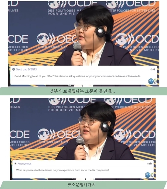 또한 인지도가 낮은 유튜버가 포럼에 참석했다는 점에 많은 이들이 의아함을 자아냈지만 그녀는 직접 "OECD에서 초빙했다"고 설명해 눈길을 끌었다.