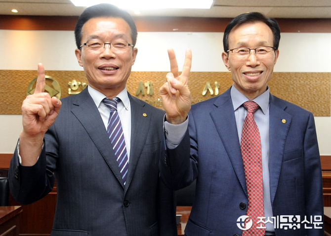 (조세금융신문=김용진 기자)31일 오후 한국세무사회 윤리위원장 후보 기호 추점에서 자신의 기호를 들어 보이며 지지를 호소하고 있다.(왼쪽부터)이동일, 한헌춘 윤리위원장 후보