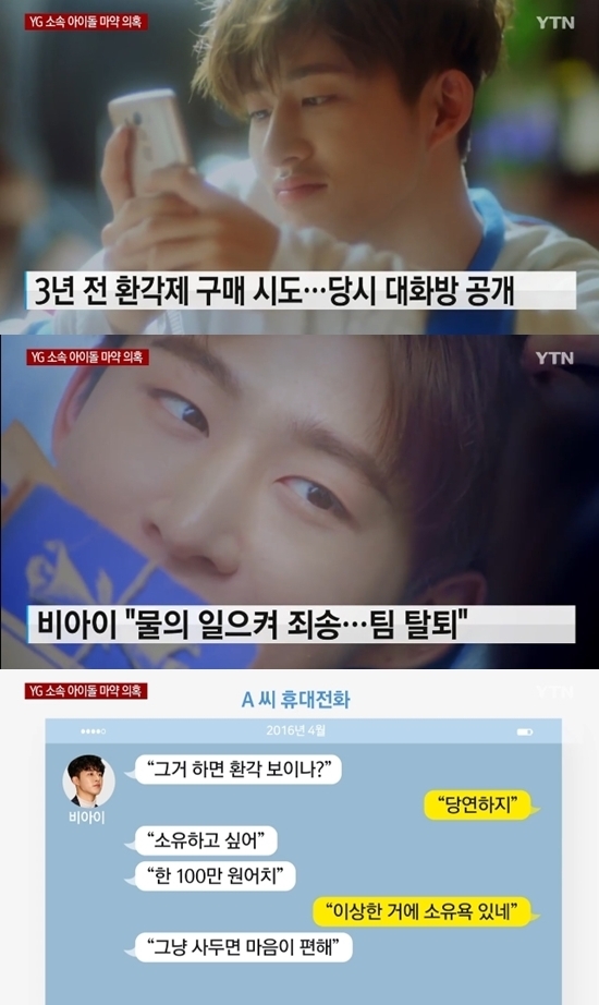 이 카카오톡 대화에서 비아이는 마약류로 지정된 환각제에 관해 끊임없이 질문하며 "X나 매일하고 싶어", "100만 원 어치 소유하고 싶어", "대량 구매 디씨(할인) 없어?"라고 이야기했다.