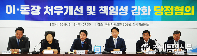 (조세금융신문=김용진 기자)이인영 더불어민주당 원내대표가 13일 오전 국회 의원회관에서 열린 이,통장 처우개선 및 책임성 강화 당정협의회에서 모두 발언을 하고 있다