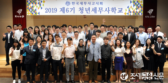 (조세금융신문=김용진 기자) 곽장미 한국세무사고시회 회장과 박종수 고려대 교수(앞줄 가운데)가 14일 오전 서울 고려대 안암 캠퍼스 Cg법학관에서 열림 제6기 한국세무사고시회 청년세무사학교에서 참석자들과 기념 촬영을 하고 있다.