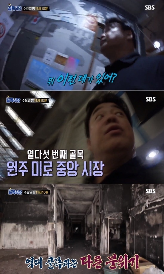 원주 미로시장 곳곳을 둘러보던 백종원은 급기야 "뭐 이런 데가 다 있어?"라고 언급하며 당황스러워했다.