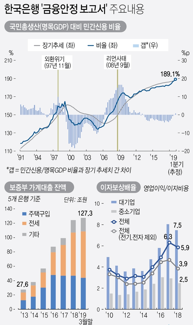 대기업의 이자보상배율은 7.5, 중소기업은 2.5다. 호황을 구가했던 전기·전자업종을 제외한 나머지 기업의 이자보상배율은 3.9로 2015년(3.5) 이후 가장 낮았다.