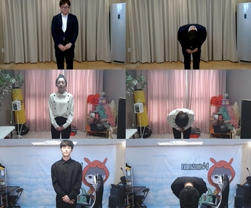 이후 남순 역시 검은색 복장을 착용하고 두 손을 모은 채 사과 방송을 진행했다.