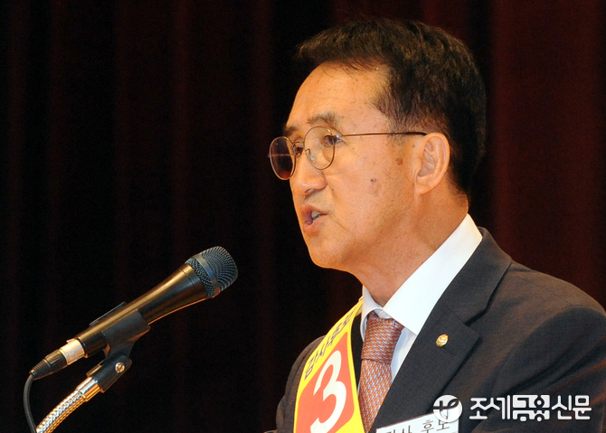 (조세금융신문=김용진 기자)남창현 한국세무사회 감사 후보가 25일 오후 부산 벡스코에서 열린 한국세무사회 감사 선거에서 부산지역 세무사들에게 호소를 하고 있다.