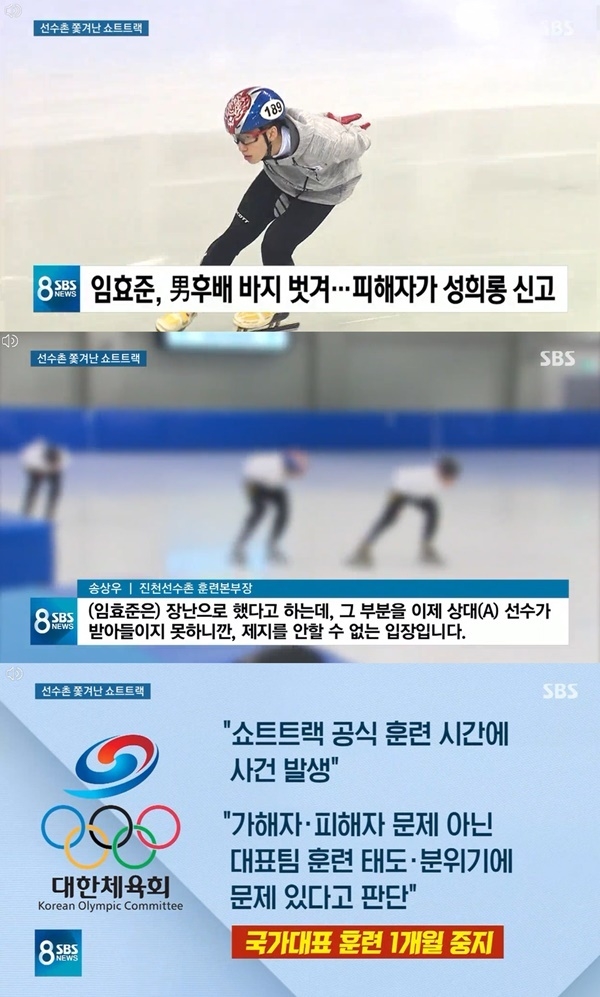 지난 17일 임효준은 쇼트트랙 남·여 합동 실내 암벽 등반 트레이닝 도중 후배 황대헌의 하의를 벗겨 속옷을 노출시켜 성추행 가해자로 지목됐다.