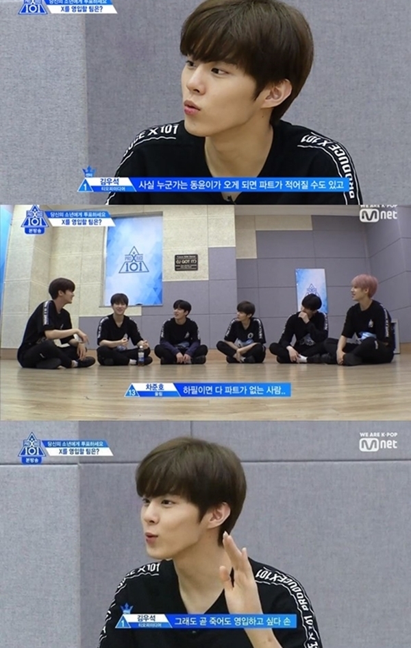 29일 재방송된 Mnet '프로듀스x101'에선 X부활전 생존자 울림 김동윤의 콘셉트평가 합류를 두고 갈등을 빚는 연습생들의 모습이 그려졌다.