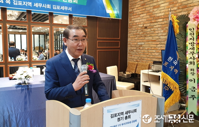 2년간 회장으로 김포지역세무사회를 이끌어 왔던 배성효 김포지역세무사회 회장은 인사말을 통해 “100여 명의 회원과 함께 김포지역세무사회 2019년 정기총회를 개최하게 된 것을 대단히 기쁘게 생각한다”라며 “바쁜 가운데에서도 12개 지역세무사회 1300여 명의 회원을 이끌고 있는 이금주 인천지역세무사회장을 대리해 참석한 김명진 부회장과 김포·강화 지역의 국세행정을 이끌고 있는 이상모 김포세무서장과 고종관 과장에게 감사 말씀을 드린다”라고 전했다.