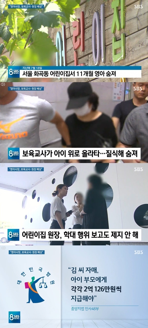 7일 SBS '8뉴스'의 보도에 따르면 재판부는 지난해 서울 화곡동의 한 어린이집에서 영아를 학대해 사망에 이르게 한 혐의를 받고 있는 보육교사 자매에게 실형 및 총 4억여 원의 배상 판결을 내렸다.