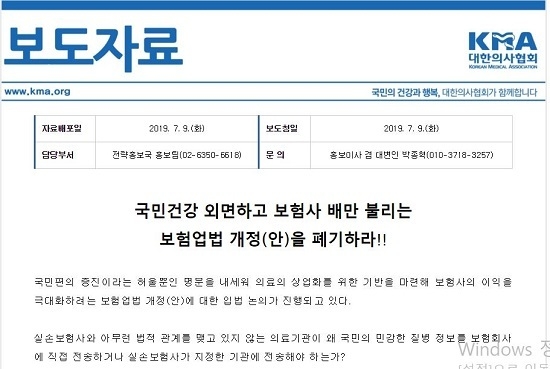 의료업계 역시 대언론 활동을 강화했다. 대한의사협회는 7일 발표한 보도자료를 통해 “실손보험사와 법적 관계가 없는 의료기관이 민감 질병 정보를 보험사에 전송해야 하는 당위성이 없다”며 “국민편익 증진이라는 허울뿐인 명분을 앞세워 의료의 상업화를 꾀하는 보험사 위주의 보험업법 개정안을 폐기하라”고 보험업계를 강도높게 비판한 바 있다.