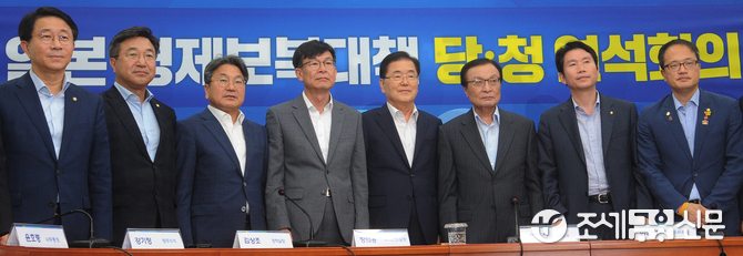 (조세금융신문=김용진 기자)이해찬 더불어민주당 대표가 16일 오후 국회에서 열린 일본경제보복대책 당,청 연석회의에 앞서 참석자들과 기념 촬영을 하고 있다.