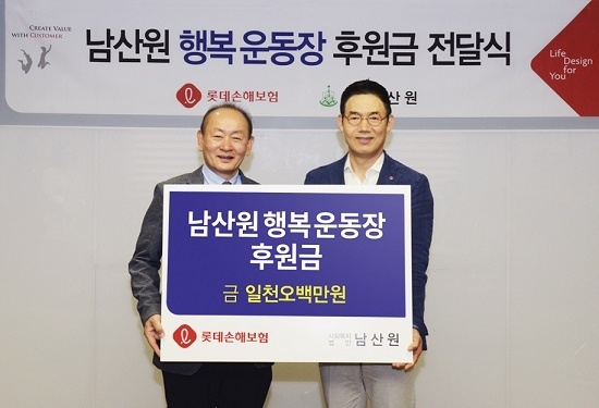 롯데손해보험은 남산원 아동들이 안전한 환경에서 뛰어 놀 수 있도록 남산원내에 행복운동장을 만들어 주고자 후원금 1500만원을 전달했다.