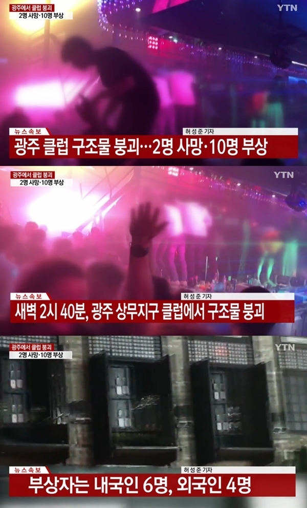 27일 다수의 매체는 이날 오전 두시 반께 광주광역시 서구 치평동에 위치한 복층 구조의 클럽 '코요테어글리'에서 붕괴 사고가 발생, 이로 인해 2명의 사상자와 10여 명의 부상자가 발생했다고 보도했다.