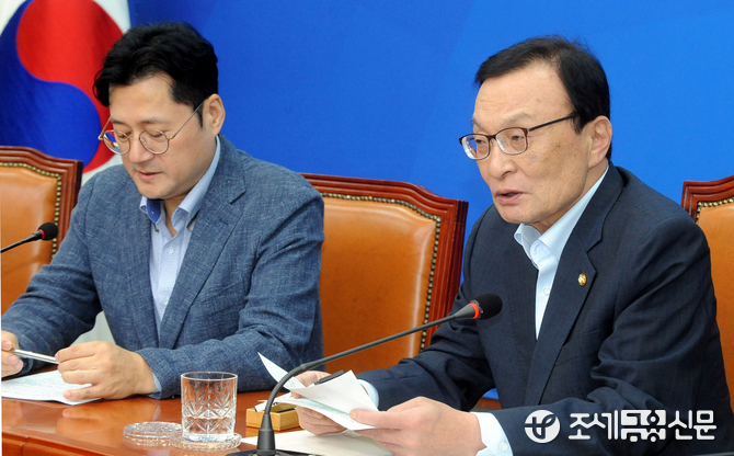 (조세금융신문=김용진 기자)이해찬 더불어민주당 대표가 30일 오전 국회에서 열린 제10차 정례 기자간담회에서 모두 발언을 하고 있다.
