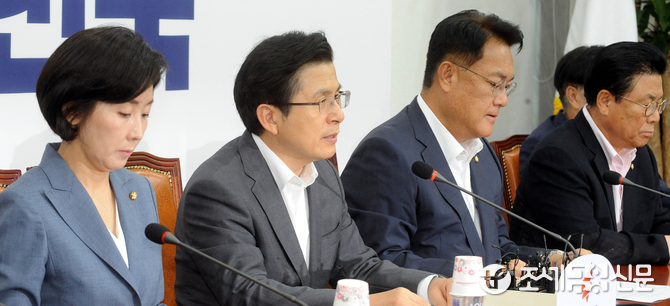 황 대표는 이날 일본수출규제대책특위 긴급회의에서 일본의 화이트리스트(수출 심사 우대국) 한국 배제 관련 긴급 기자회견을 하고 있다