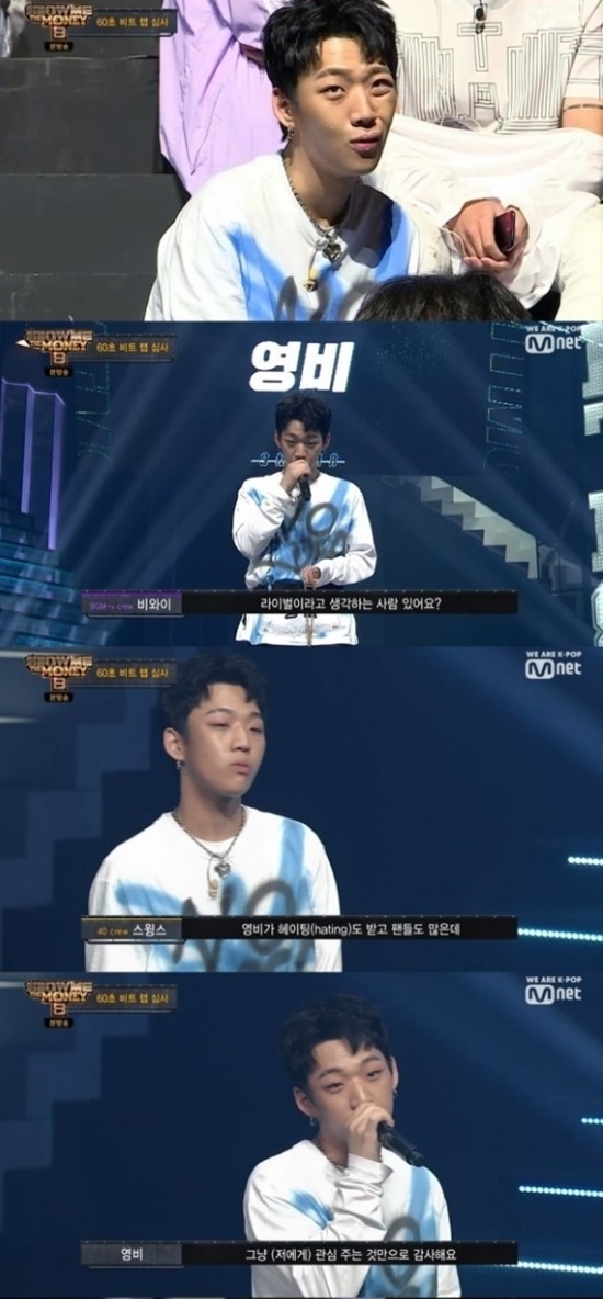 9일 방송된 Mnet '쇼미더머니8'에서는 60초 비트랩 심사가 진행된 가운데 맨끝 무대를 장식한 영비는 EK, 디보를 라이벌로 꼽았다.